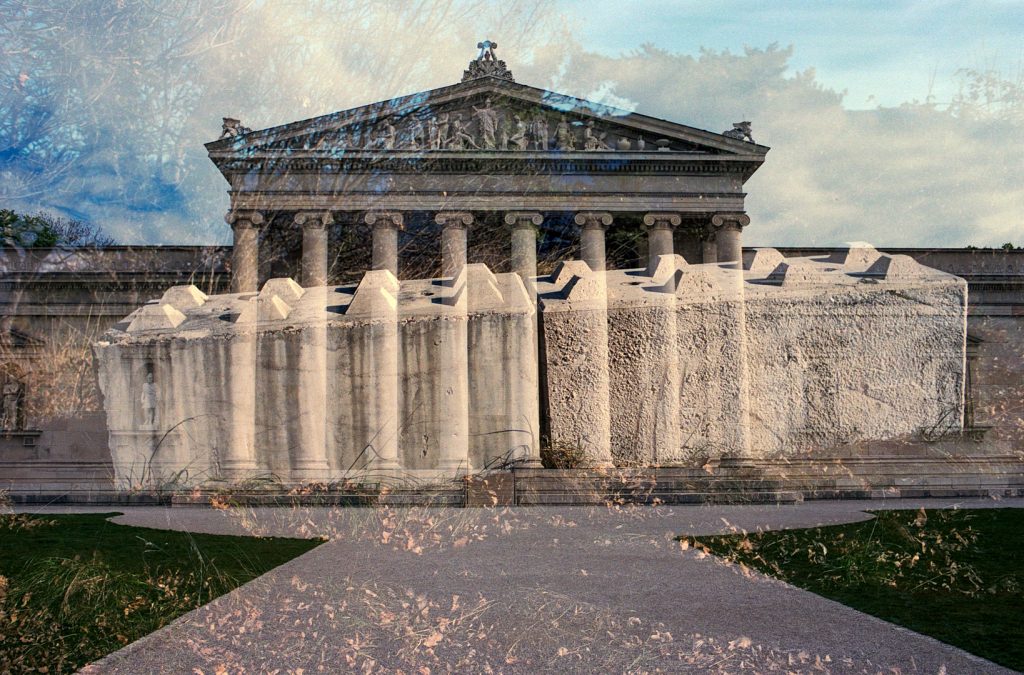 Unsere Gedanken überspannen die Gebäude wie Netze. Nicht die Materie trägt Schuld, sondern unsere Projektionen auf sie. Untrennbar verwoben sind historisches Gedächtnis und heutige Wahrnehmung. Nur die Erkenntnis durchbricht die Fessel des Verharrens und ermöglicht einen Neubeginn.